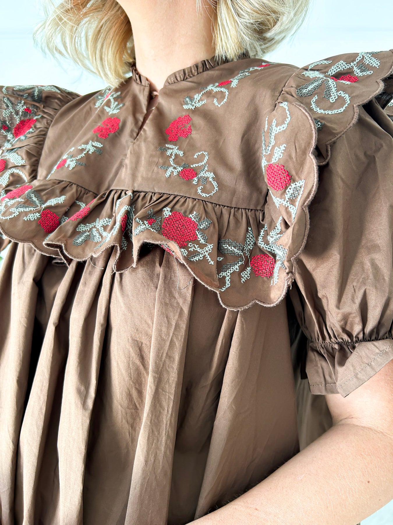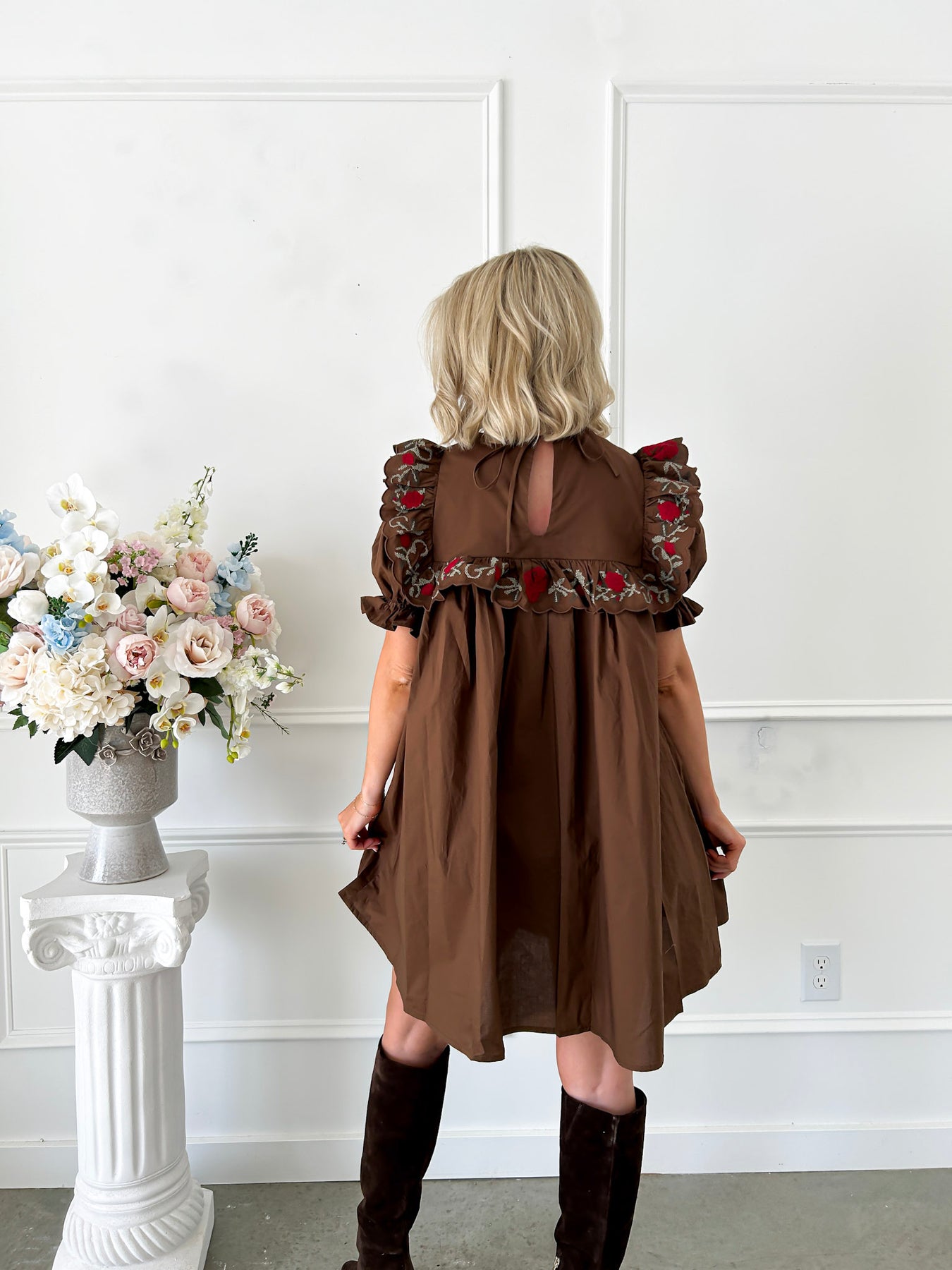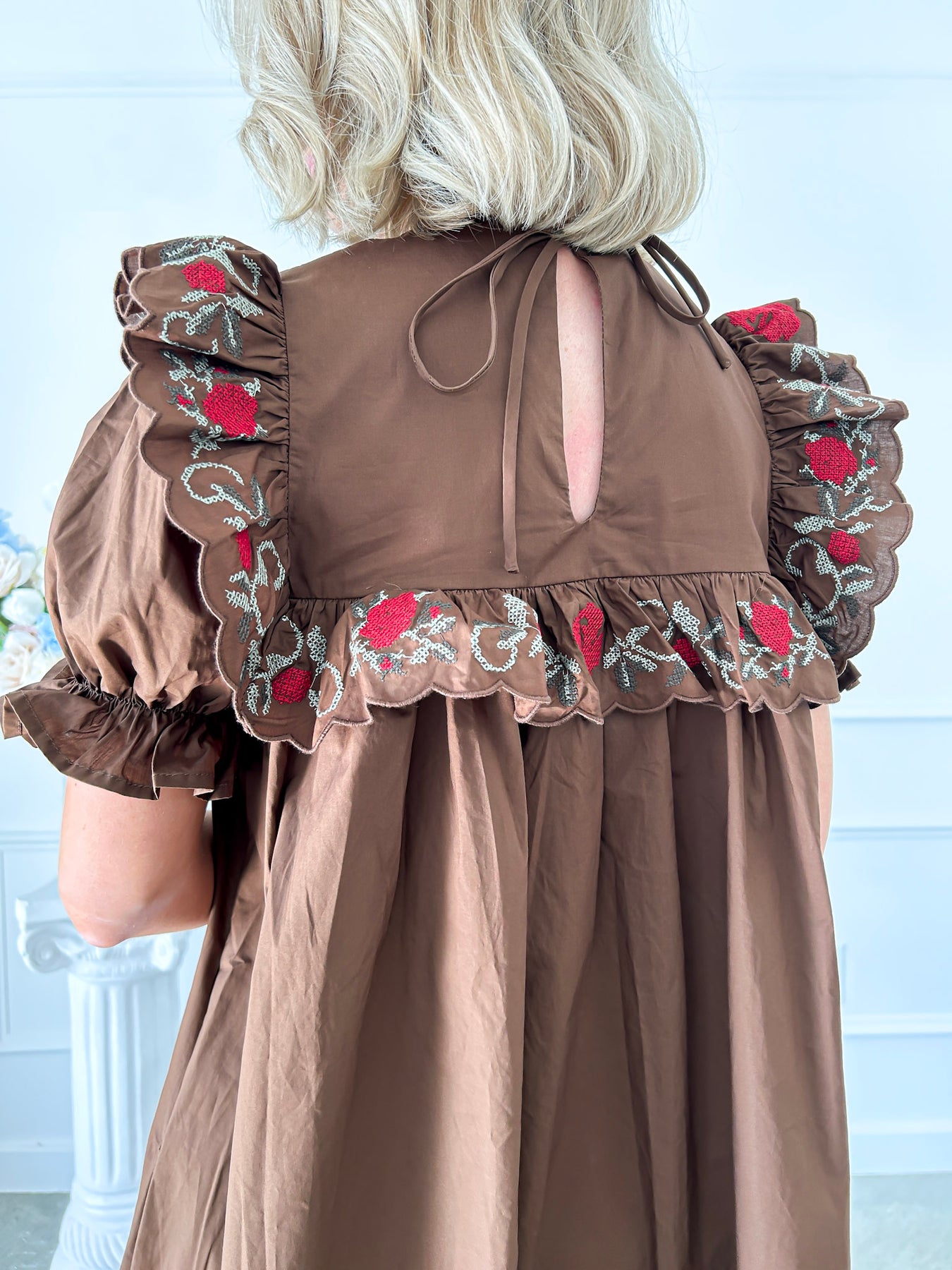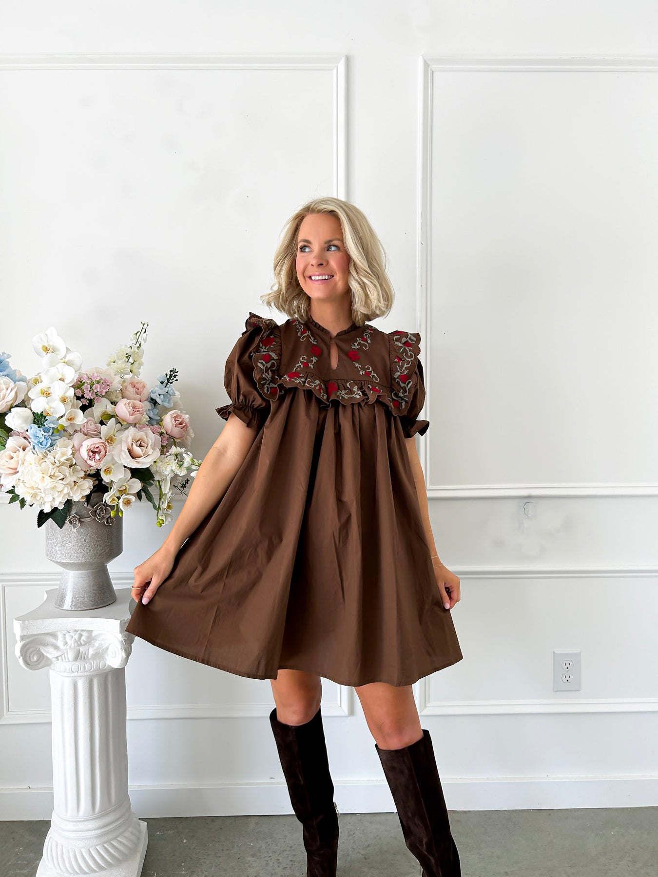 Brown Sugar Sweet Embroidered Babydoll Dress