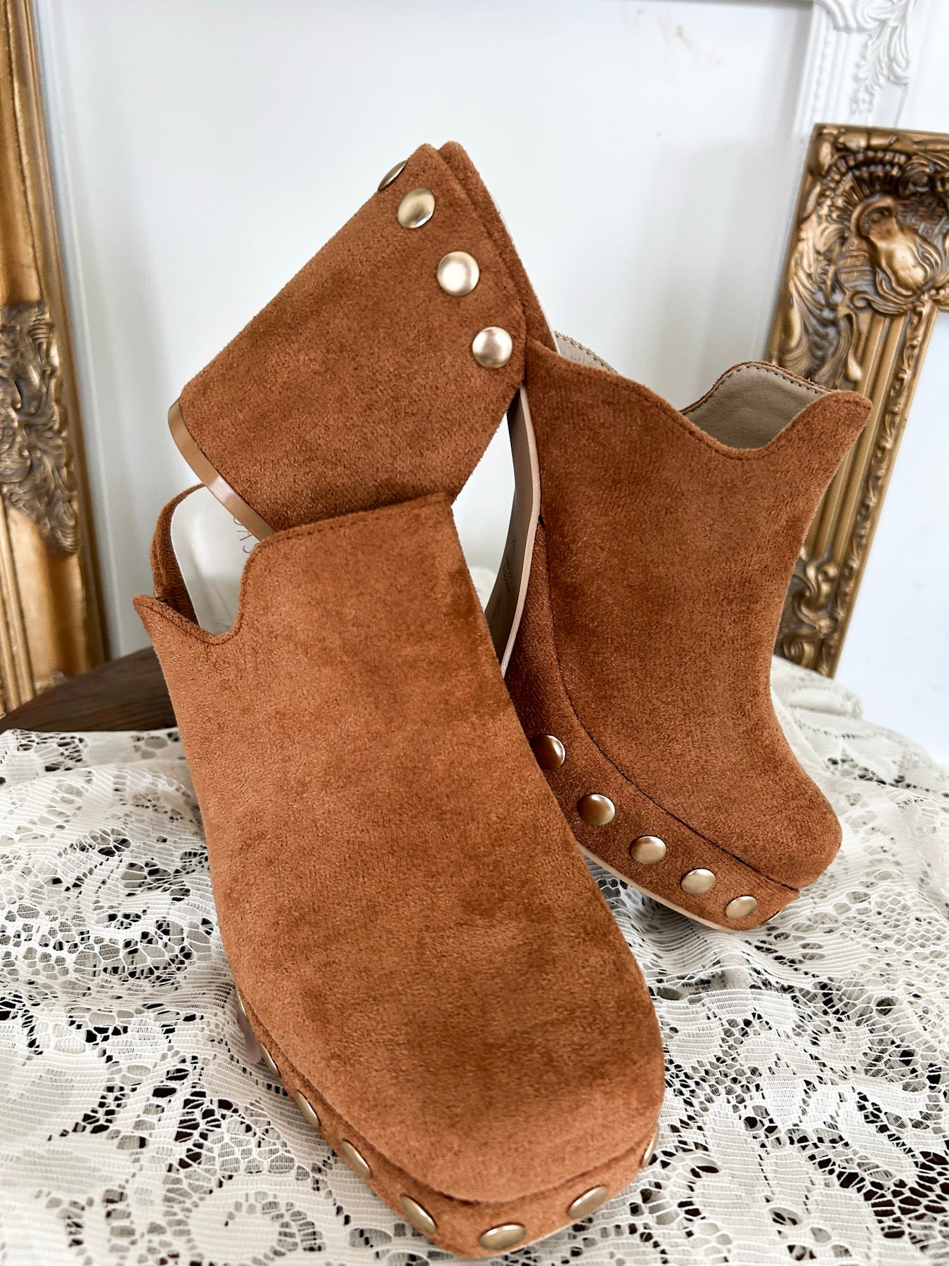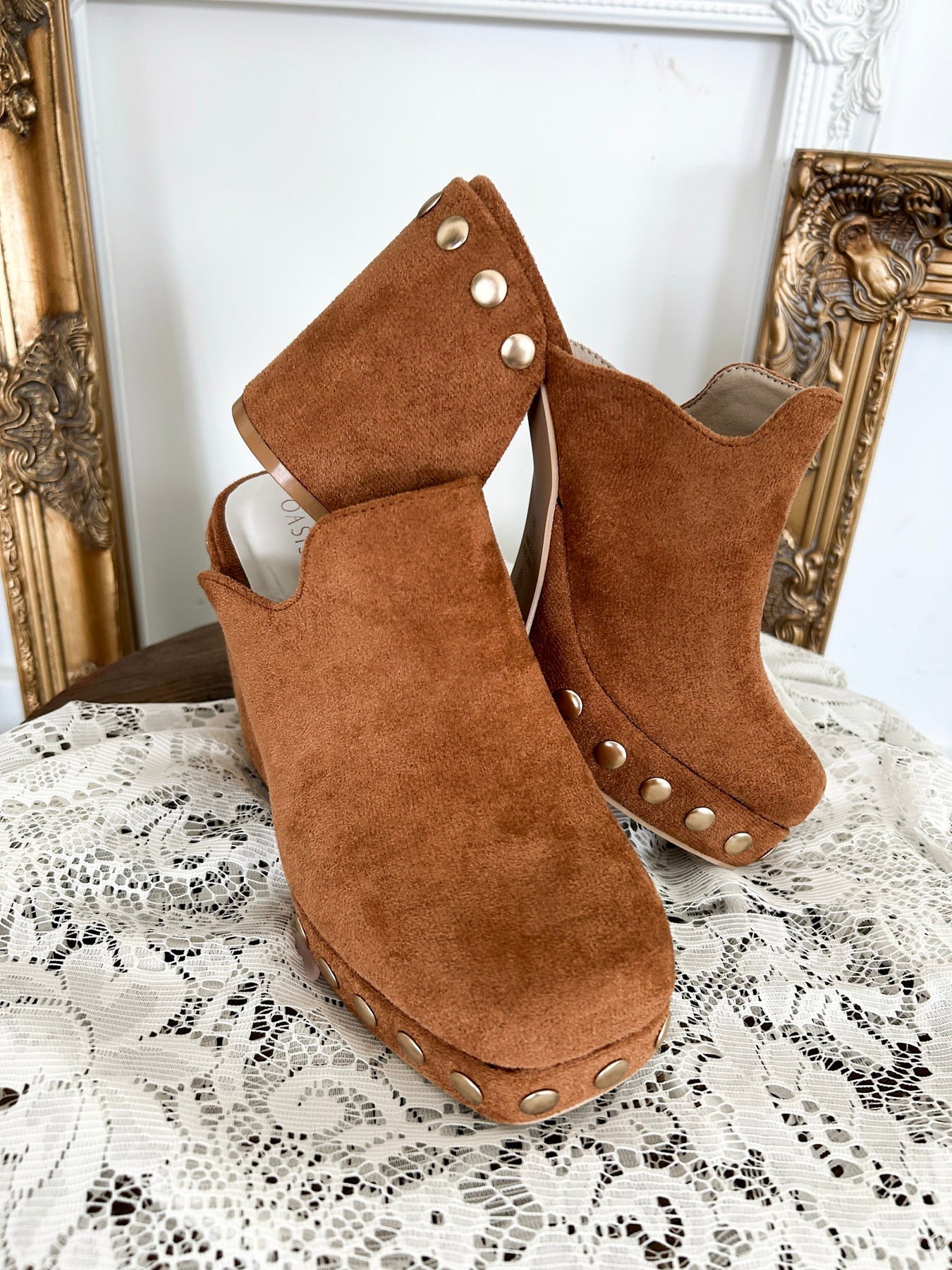 Elevate your fall wardrobe with the Caramel Brown Platform Mule! This charming clog mule in a warm caramel brown shade is adorned with playful gold studs for a touch of sparkle. Its platform design adds a fun boost, making every step cozy and stylish. Perfect for autumn adventures, these mules bring a dash of cheer to any outfit.