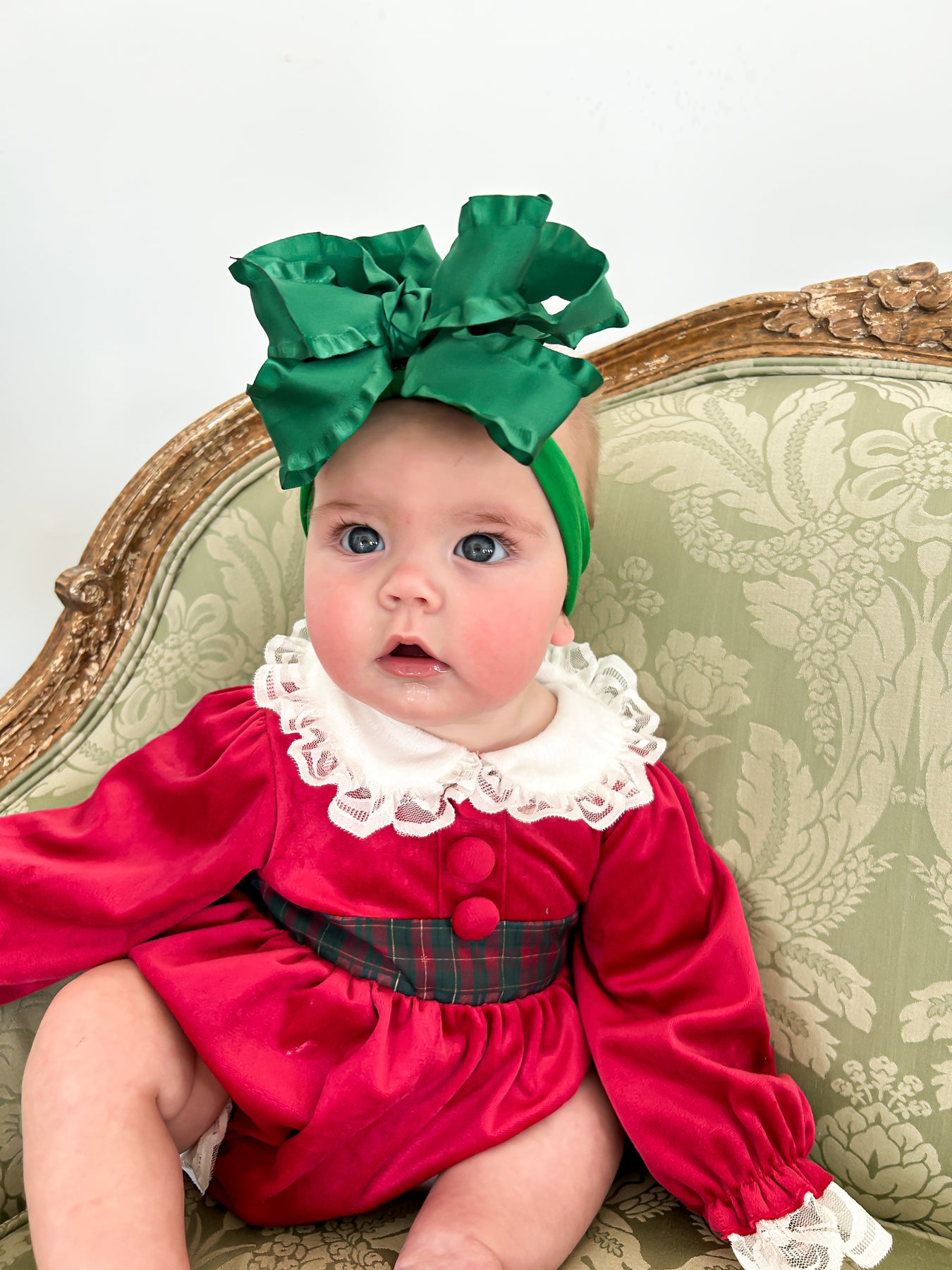 Add a touch of charm with this playful double ruffle bow in a rich forest green. Featuring a large 1.5" ribbon layered into elegant loops, it’s securely attached to an alligator clip for easy wear and all-day hold. Perfect for brightening up any outfit with a fun, fluttery flair.