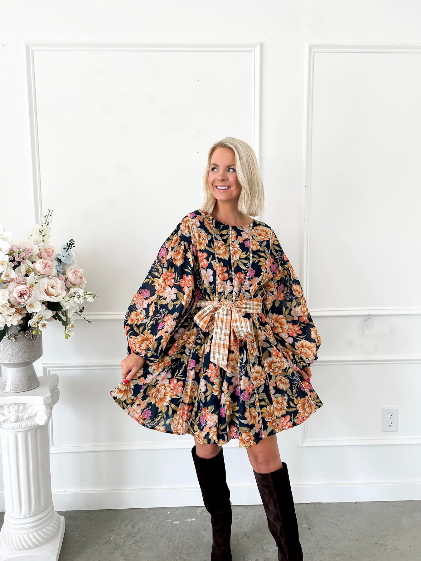 Harvest Blooms Navy Floral Dress