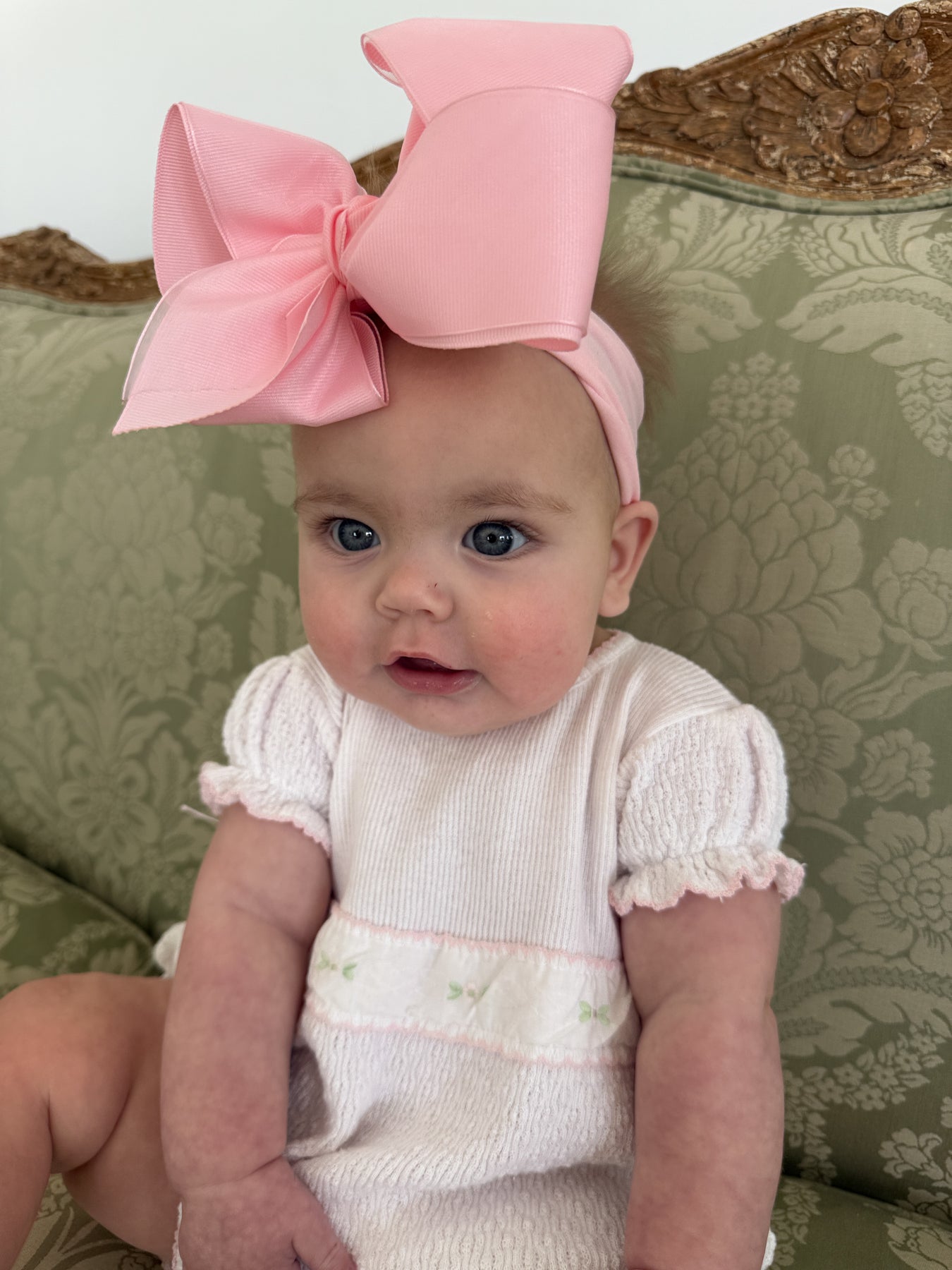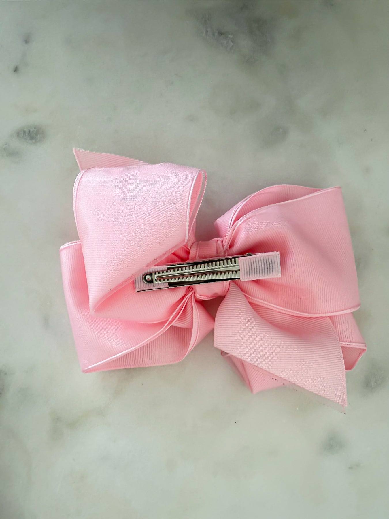 Elevate any hairstyle with this charming, layered bow on an alligator clip! Crafted from delicate organza and grosgrain ribbons, this 5.5" light pink bow adds a touch of whimsy and elegance to everyday looks. The secure alligator clip keeps your style in place all day long.