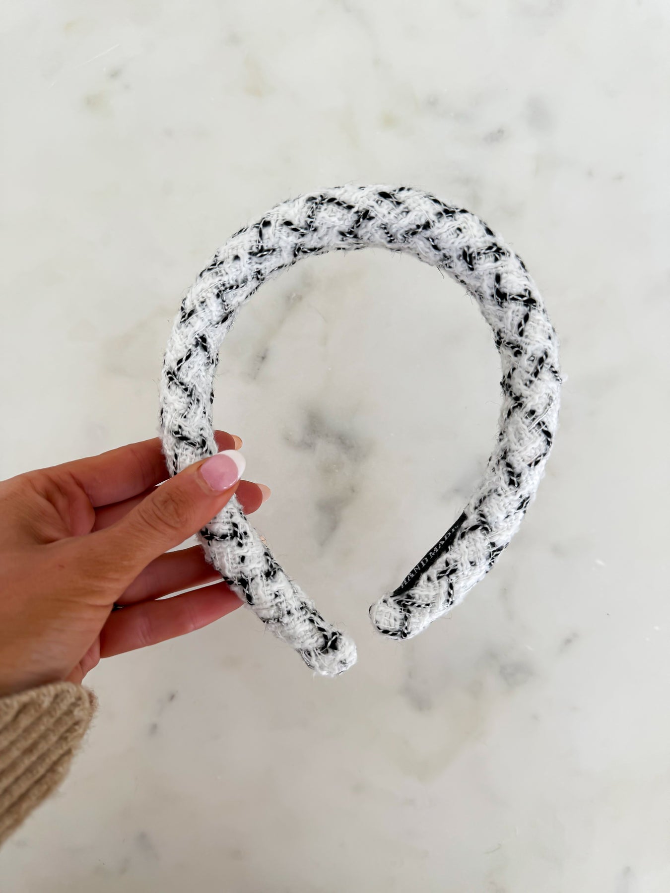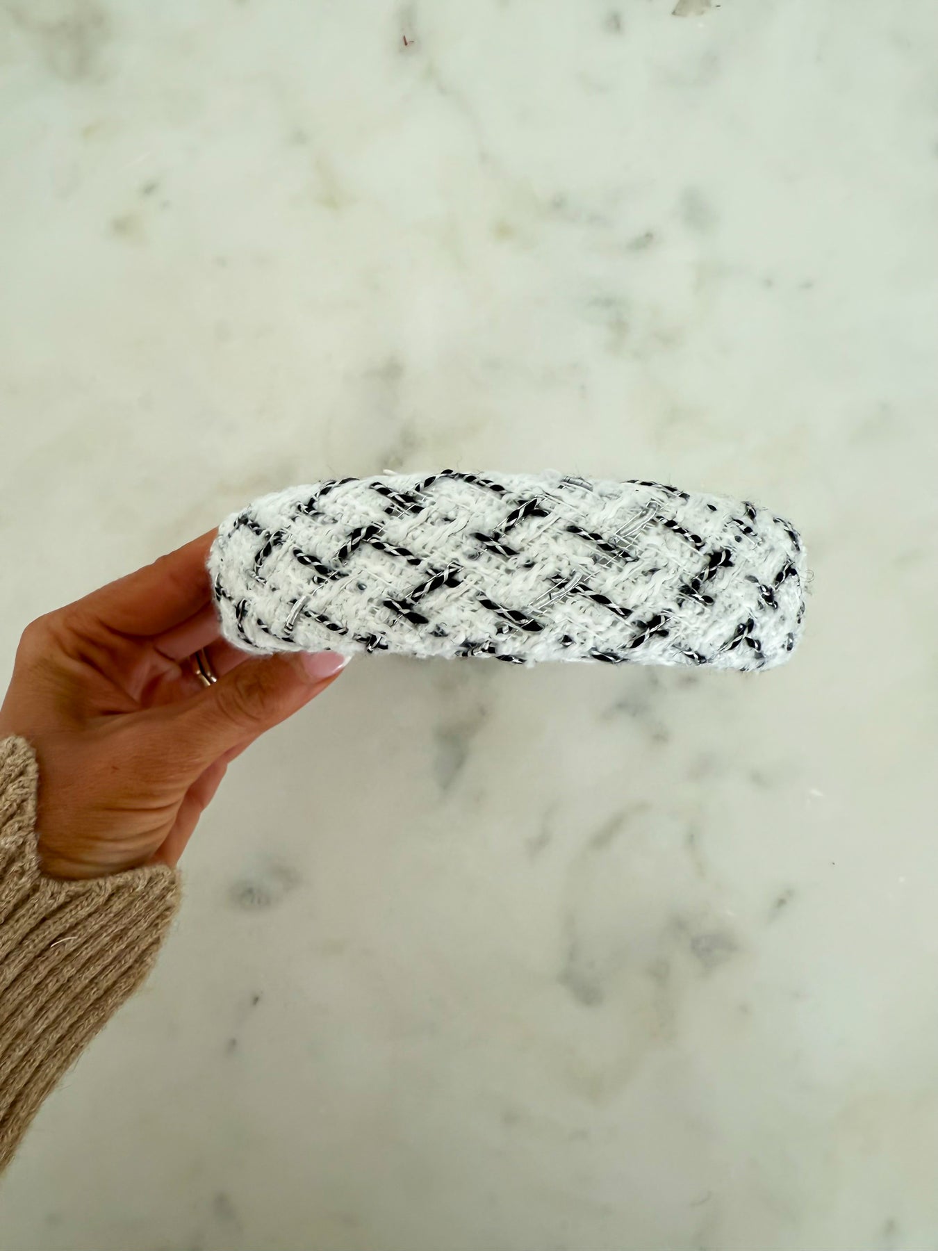 Brighten your day with this playful white knit headband, adorned with a delicate black diamond pattern. Its wide brim adds a chic, classic touch while keeping your look cozy and stylish. Made from 100% yarn, it’s the perfect accessory to add a fun twist to any outfit.