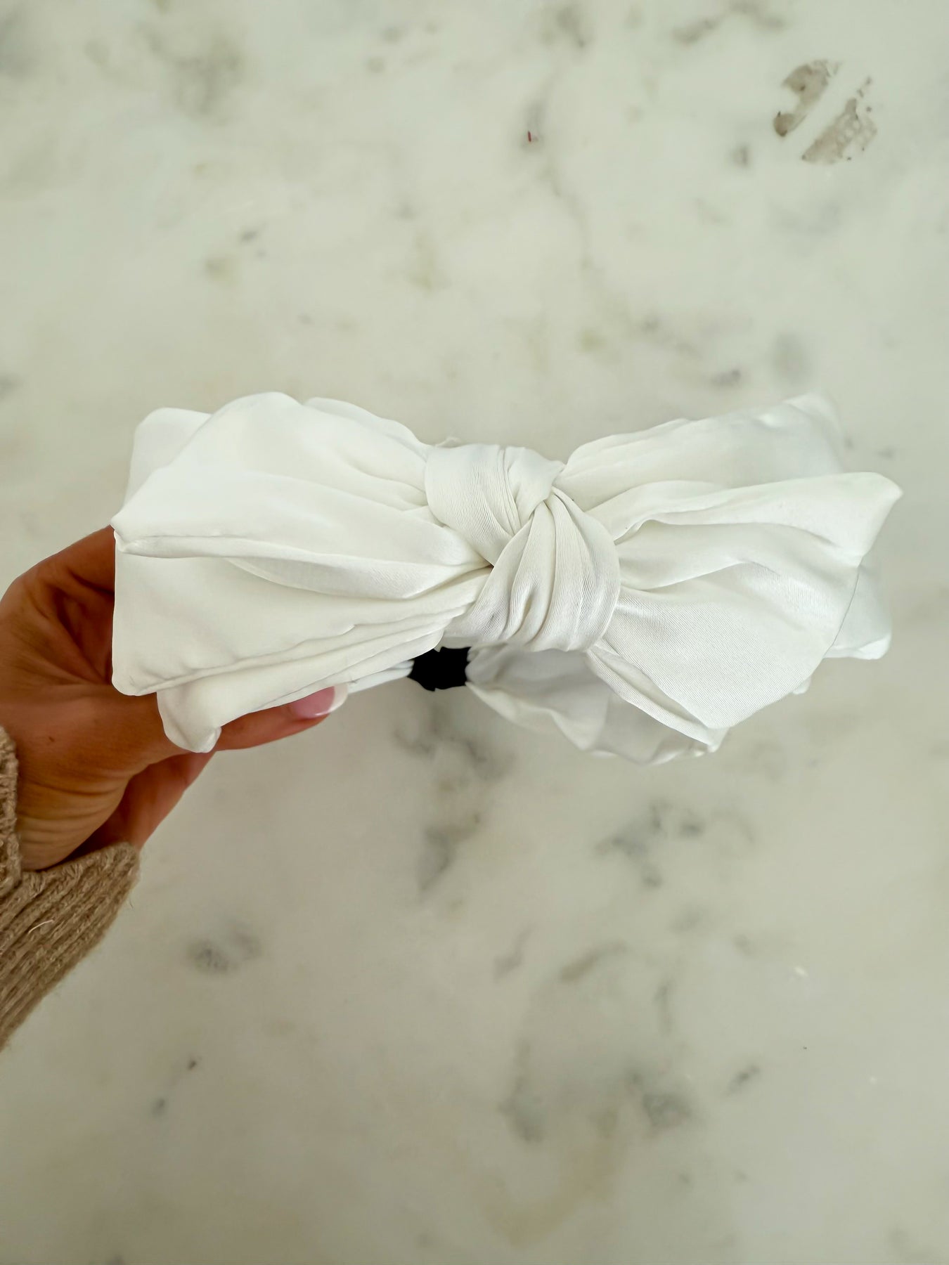 Elevate your festive look with this white triple bow headband, crafted with three elegant layers for a rich, textured appearance. Perfect for Christmas celebrations, it adds a refined touch to any ensemble while ensuring comfortable wear. Ideal for those seeking a sophisticated accessory that combines holiday spirit with timeless style.