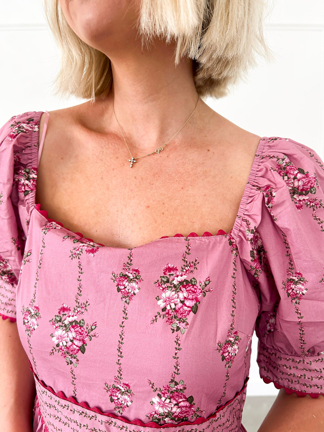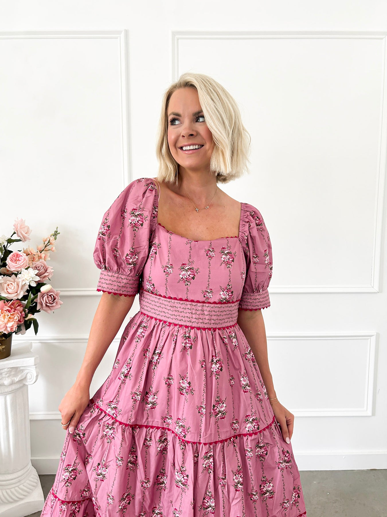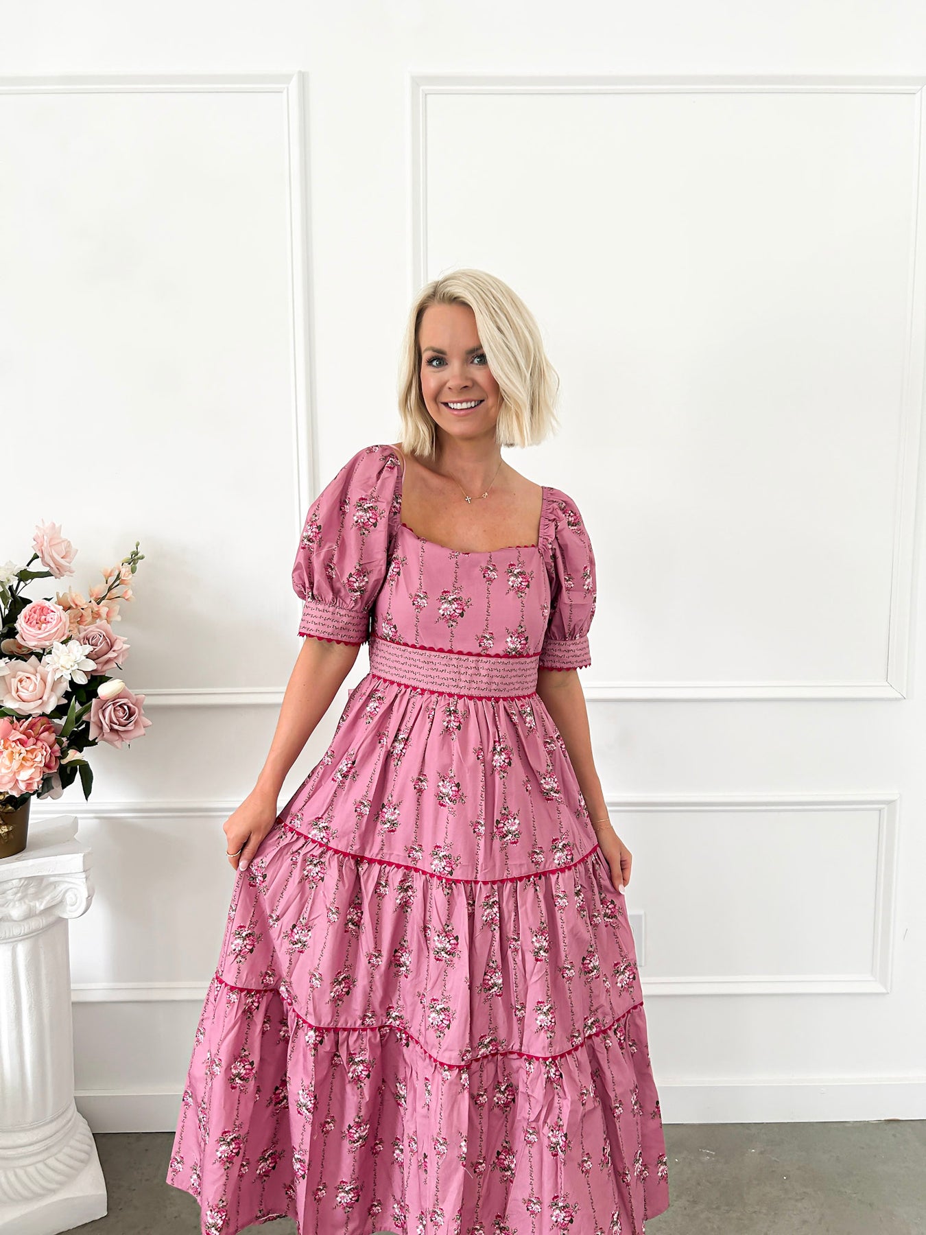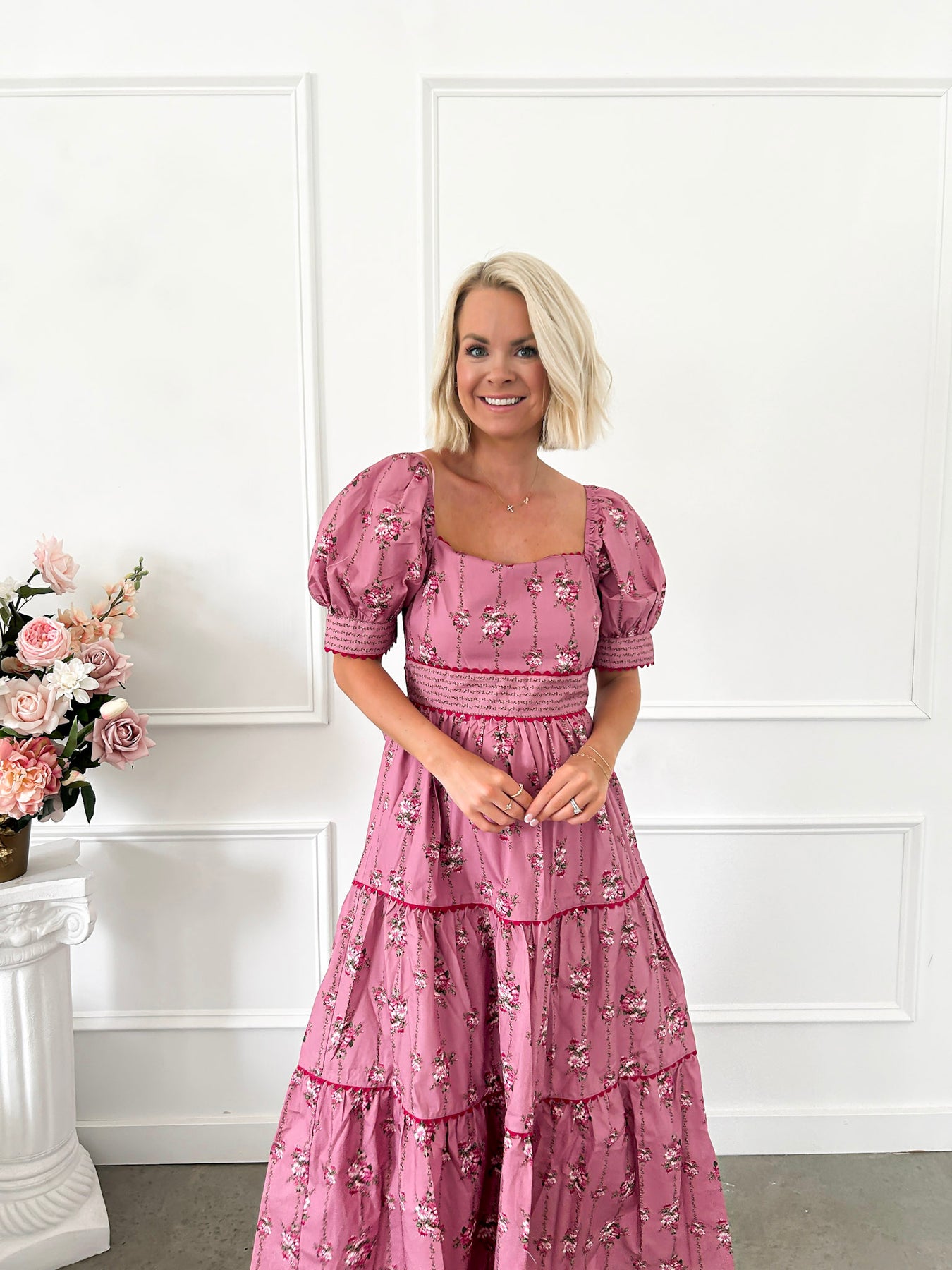 Step into fall with the Luck Be A Lady Mauve Floral Maxi Dress, a playful blend of charm and comfort. This dark mauve beauty features delicate floral prints, puff sleeves, and a smocked back for a perfect fit. The bow tie and red scallop trim add flirty details, while the tiered skirt dances with every step. Embrace the season’s hues in a dress that’s as fun as it is flattering.