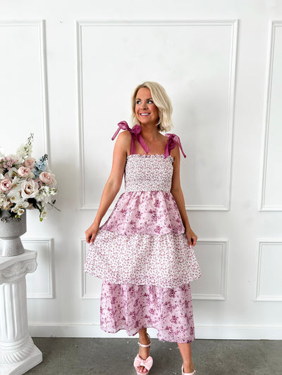 Fleur d'Amour Magenta Floral Midi Dress FINAL SALE
