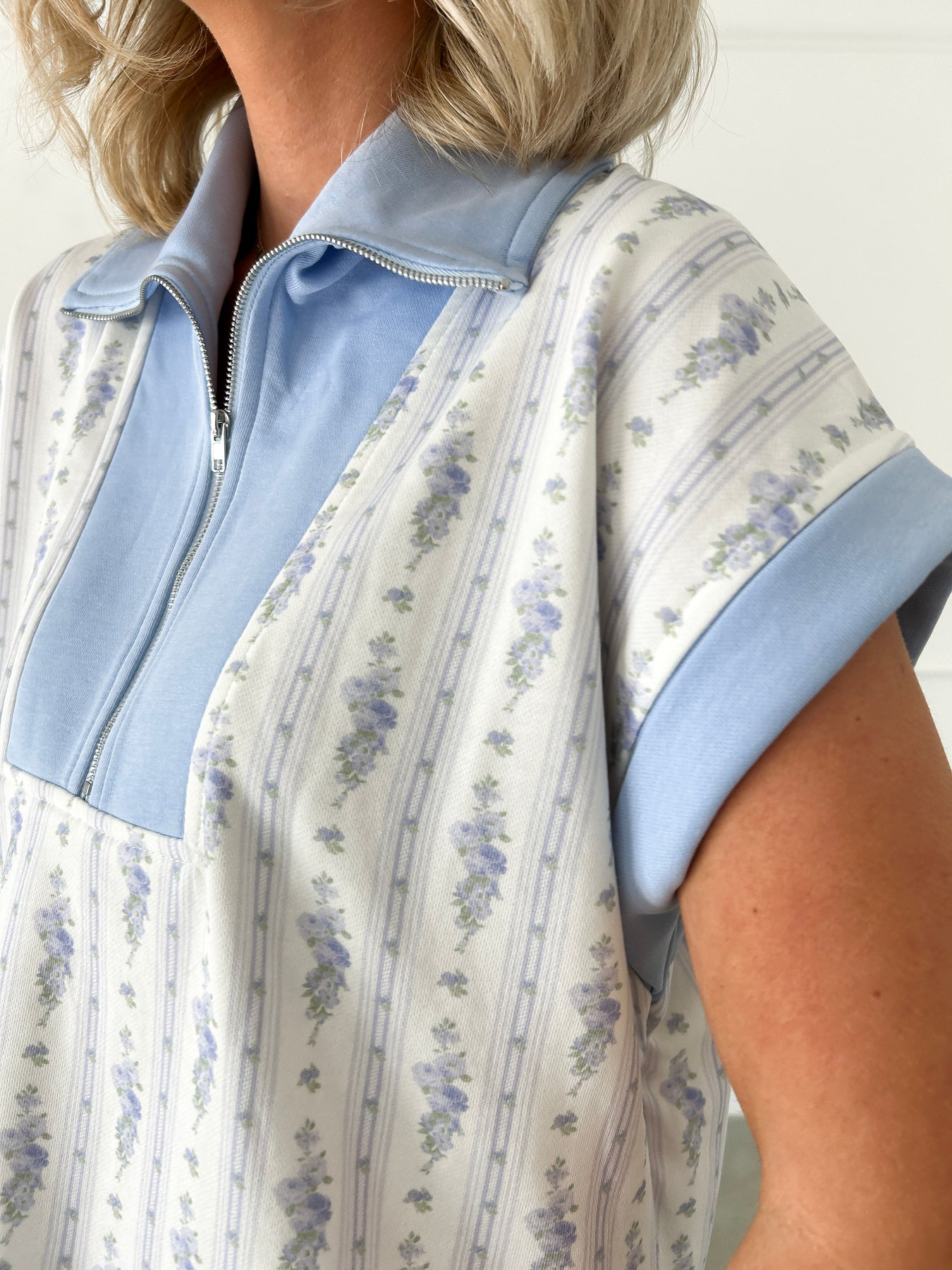 Slip into effortless style with this charming blue floral set! The zip-up peplum top adds a playful silhouette while the ruffle shorts keep things fun and flirty. Perfect for lazy days at home or casual hangouts, this cozy loungewear combo brings together comfort and cuteness in one delightful package. Soft, stretchy fabric lets you move freely, making it your new go-to for relaxed vibes and feel-good fashion.