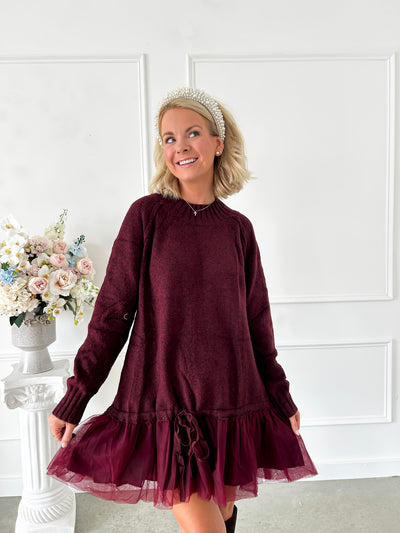 Twirl Me Twice Merlot Tulle Sweater Dress