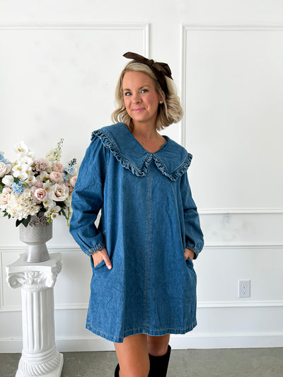 Blue Skies Ahead Denim Ruffled Dress