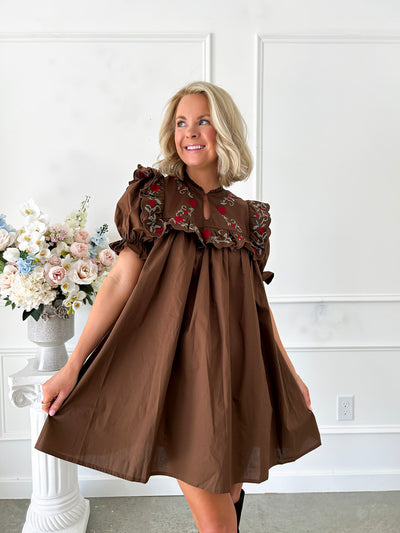 Brown Sugar Sweet Embroidered Babydoll Dress
