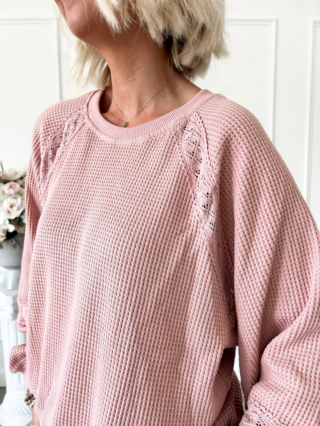 Embrace cozy charm with this Muted Muse Pink Lace Short Set. Featuring a soft, textured fabric in a gentle pink hue and delicate lace details, it’s the perfect throw-on-and-go outfit for those crisp fall days. Stylish yet comfy, these shorts make transitioning your wardrobe effortless and fun.